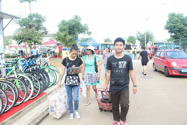 早上7:30,员工会的同学们已经来到迎新地点进行布置,半个小时后全部迎新队伍便已全部到齐“严阵以待”。公司接待新生采取一条龙的服务形式,分别在校门口,公交车站及二栋教学楼下设立站点,主要为方便新生能准确无误的报道注册。学长学姐们带领新生进行资格审核、缴费、本院部报道、购买军训服,办理一卡通,最后再把新生带到员工公寓宿舍。引路途中,学长学姐们耐心的解答新生及家长的各种疑难问题,主动为他们拿行李,另外在向他们介绍公司的概况和所学专业方面的情况。接送的同学们都相当辛苦,一天结束每人下来来回跑多趟,甚至在最炎热的中午他们也主动积极地要求接送并细心地接过家长的行李,毫无怨言。他们都说:累是累,但挺有意义的,看着家长和新同学们满怀感激的笑容,痛并快乐着就是了,接新生是我们义不容辞的责任。