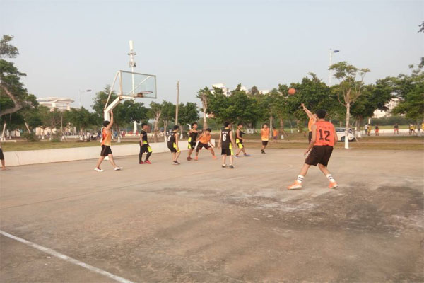 在班级同学的加油声中,各队球员们准备就绪,抢球运球配合的非常精妙,以娴熟的技术拉开着比分差。落分班级的球员们顽强拼搏,奋起追击,风驰电掣,迎难而上。随着裁判的一声哨响第一节结束了。双方球员在场下商讨战术。场边的啦啦对口号越喊越响,让本班球员增强了自信心。比赛紧张而激烈地进行,场面异常火爆。