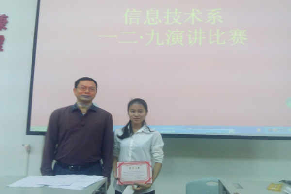 经过统分员根据评委给出的分数对其统分,最后林春宝同学以更深、更浓、更精的“演”“讲”征服了大家,最终以93.25的高分取得本次比赛的一等奖,其中李锦凯、陈世军获二等奖,李琳梦、罗丽君、王硕获三等奖,陈海平、陈灿锋、马学坤、刘金华获优秀奖。并依次由老师们为他们颁奖。
