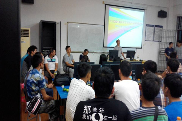本系9月11日讯(信息技术系 钟超报道)按照公司制定的人才培养方案以及系部统一部署,信息技术系开展了一系列新生入学专业教育活动,9月9日晚上7:30分,计算机网络技术专业负责人王岩老师组织了新生专业教育活动,由专业负责人带领2014级新生到4-410教师,由王岩老师主讲,目的是让新生了解公司、了解系部、了解专业。