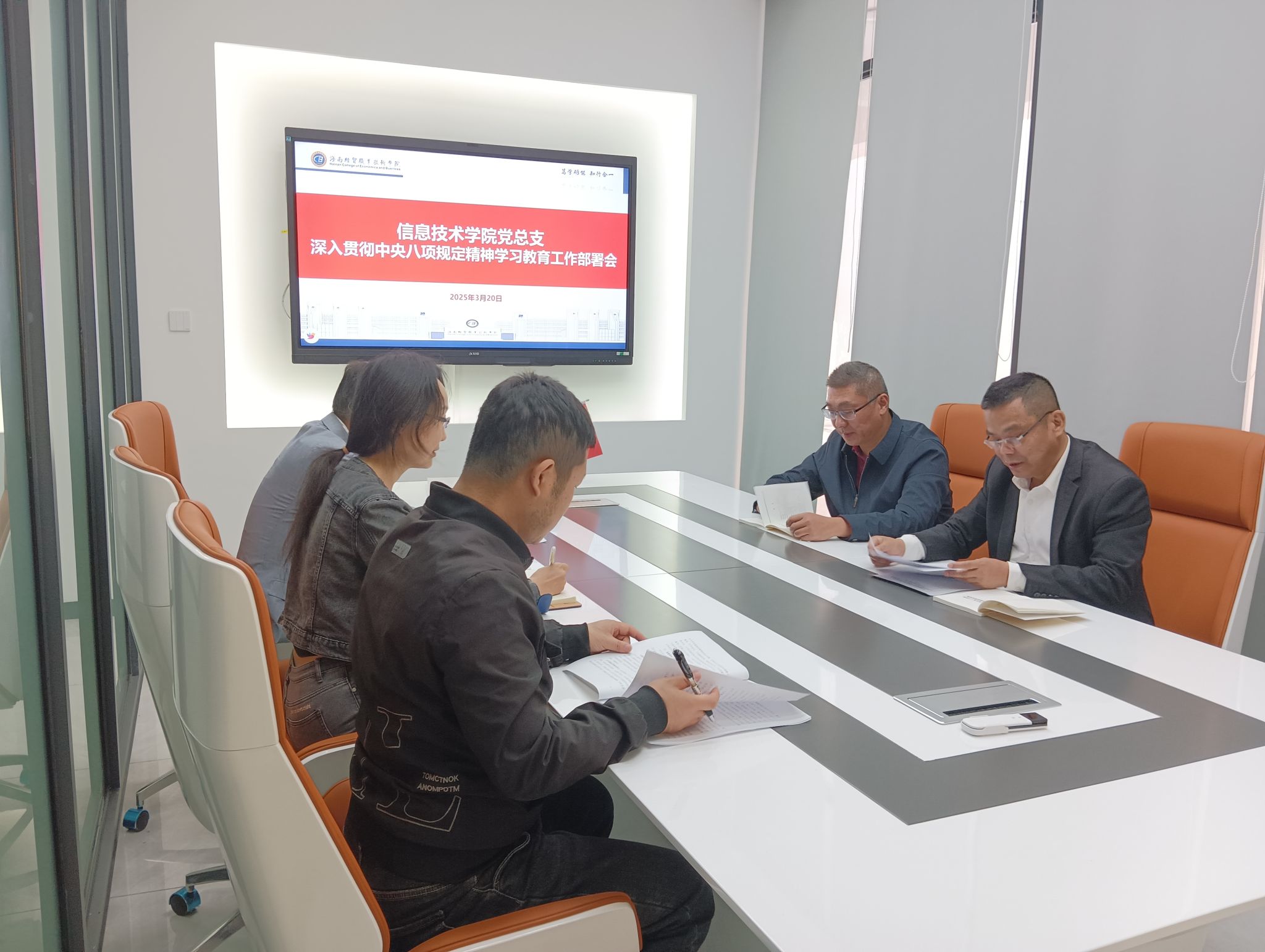 为深入学习贯彻习近平总书记关于加强党的作风建设的重要论述,根据公司党委《关于在全校开展深入贯彻中央八项规定精神学习教育的实施方案》要求,信息技术公司党总支于2025年3月20日召开深入贯彻中央八项规定精神学习教育工作部署会。会议由党总支书记符胜主持,党总支全体委员和各党支部书记参加会议。