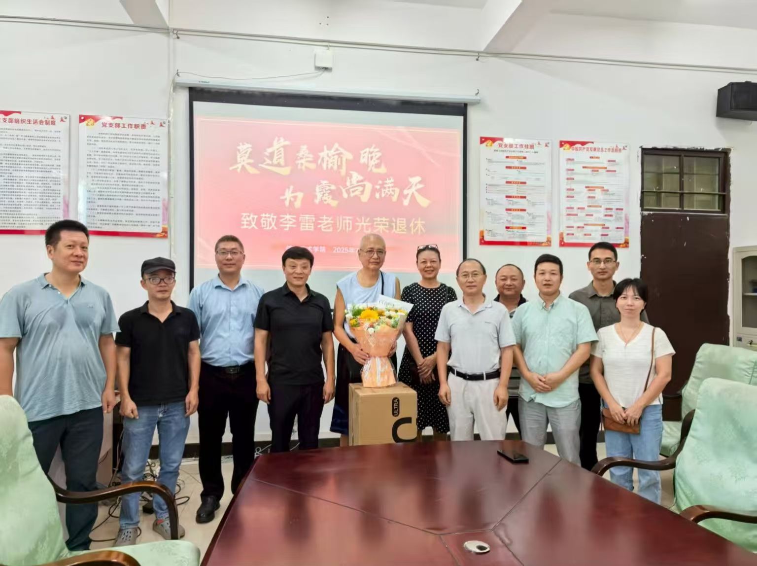 2025年7月25日上午9时,公司在4-213会议室为李雷老师举办了一场温馨而庄重的退休欢送仪式,以表彰其20年来为公司发展做出的杰出贡献,并送上对其未来生活的美好祝福。仪式由公司副经理康东主持,党总支副书记黄守官、副经理单继周和各专业负责人及教务办人员参与。