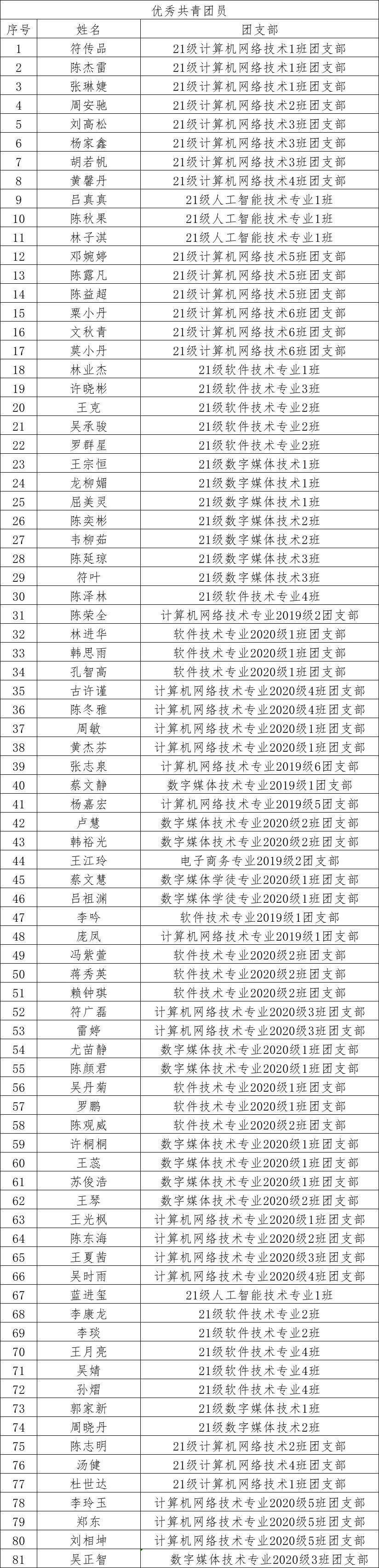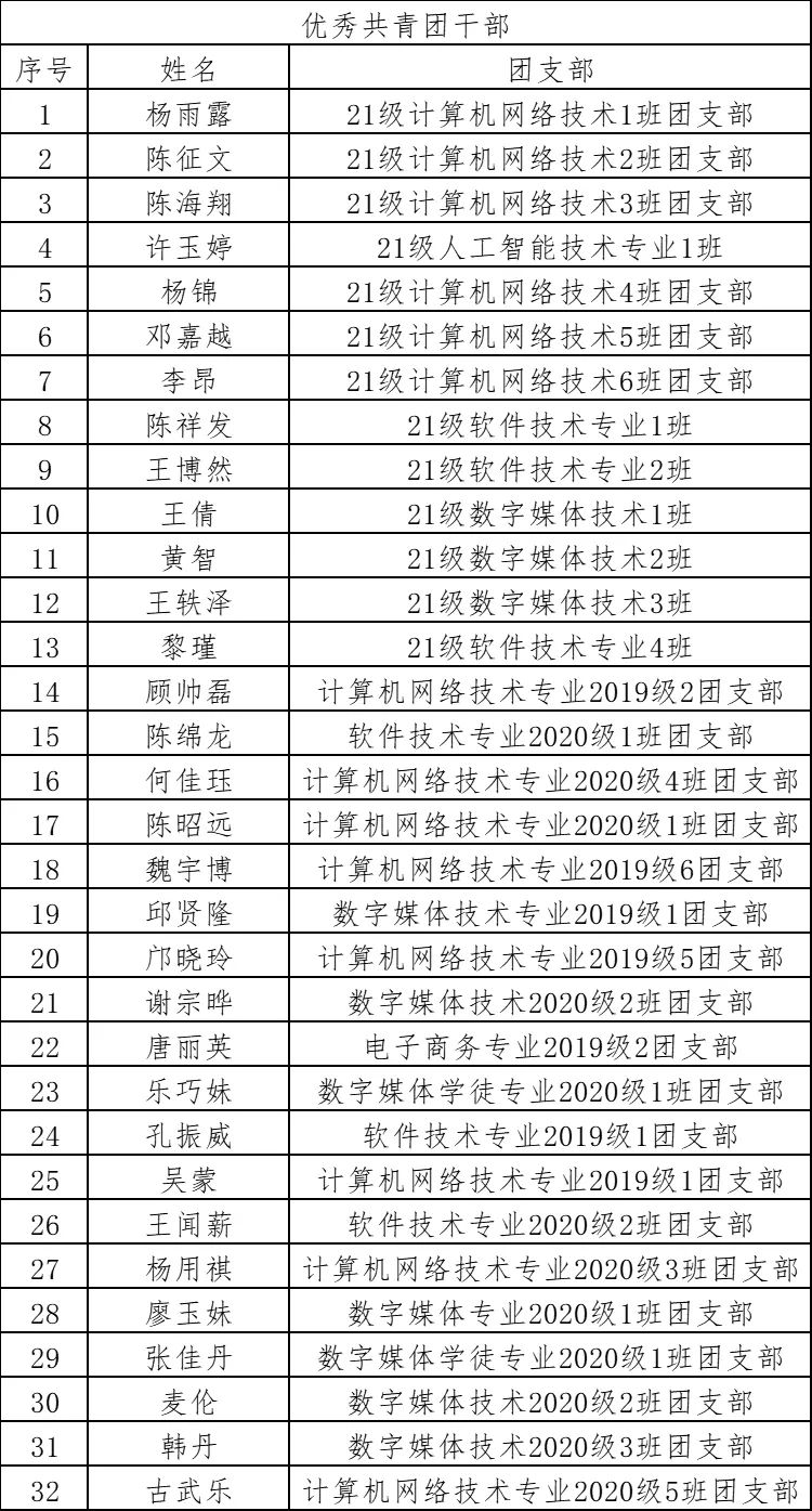 本着公平、公正、公开的原则,经员工个人申请、辅导员审核、院团总支考察、公司党总支同意,现将公司2022年“五四评优”人员名单进行公示: